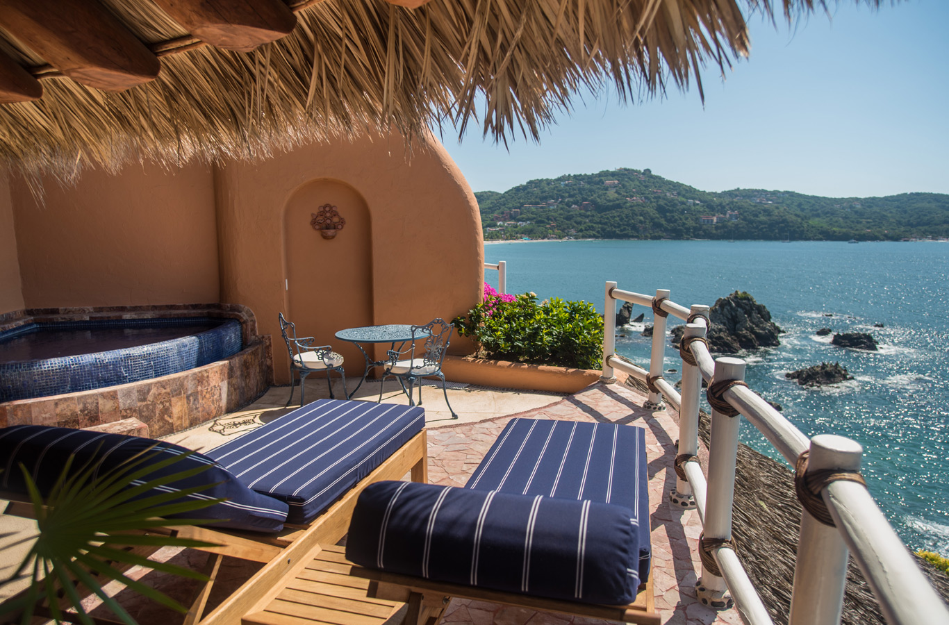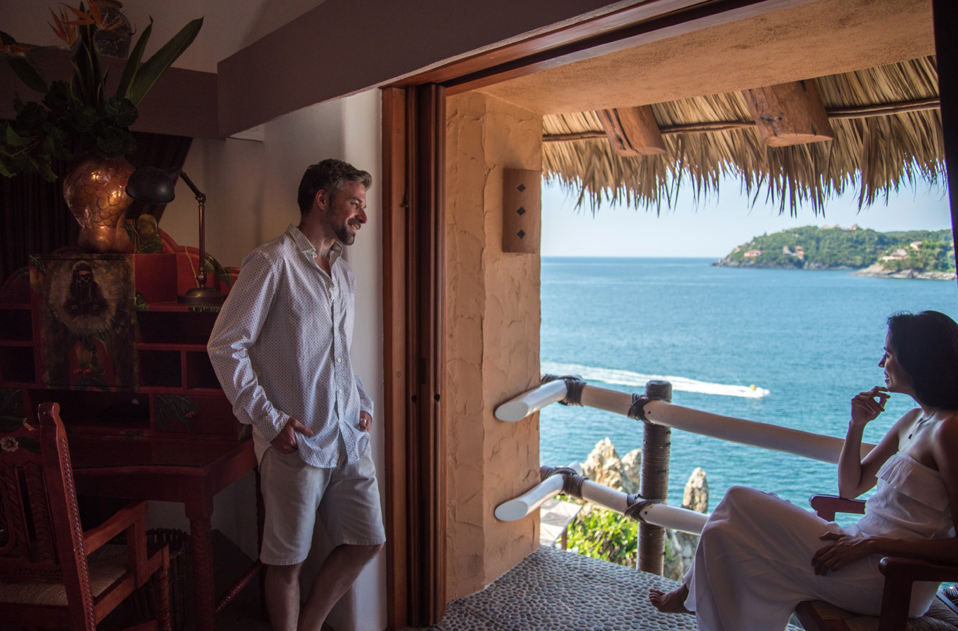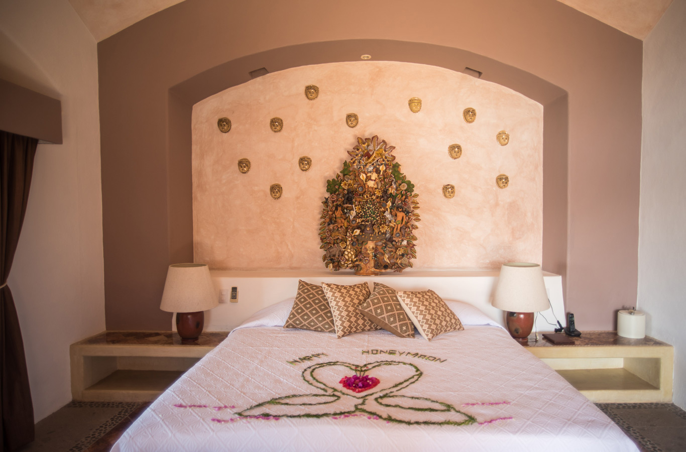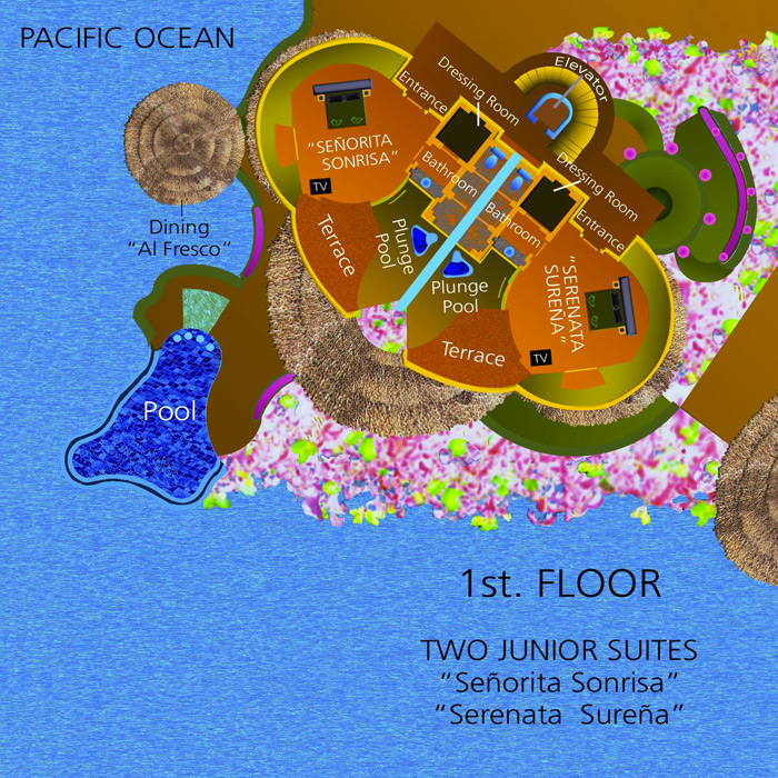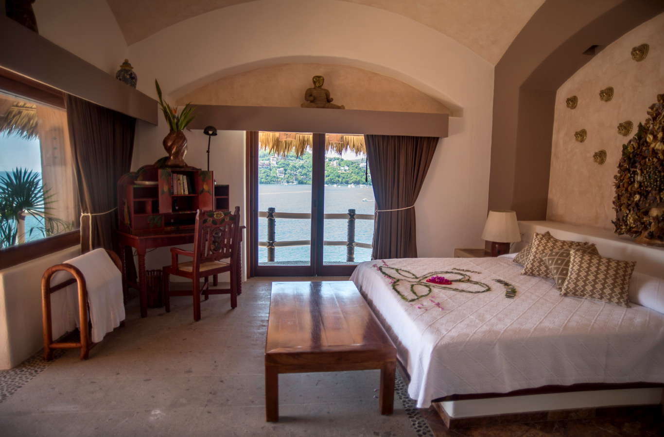 Situada en el primer piso, esta acogedora suite de color terracotta cuenta con doble vistas a la bahía y amplia terraza con Plunge pool. Además, tiene unbalcón, escritorio, baños dobles y emblemáticos objetos representativos de la artesanía mexicana.